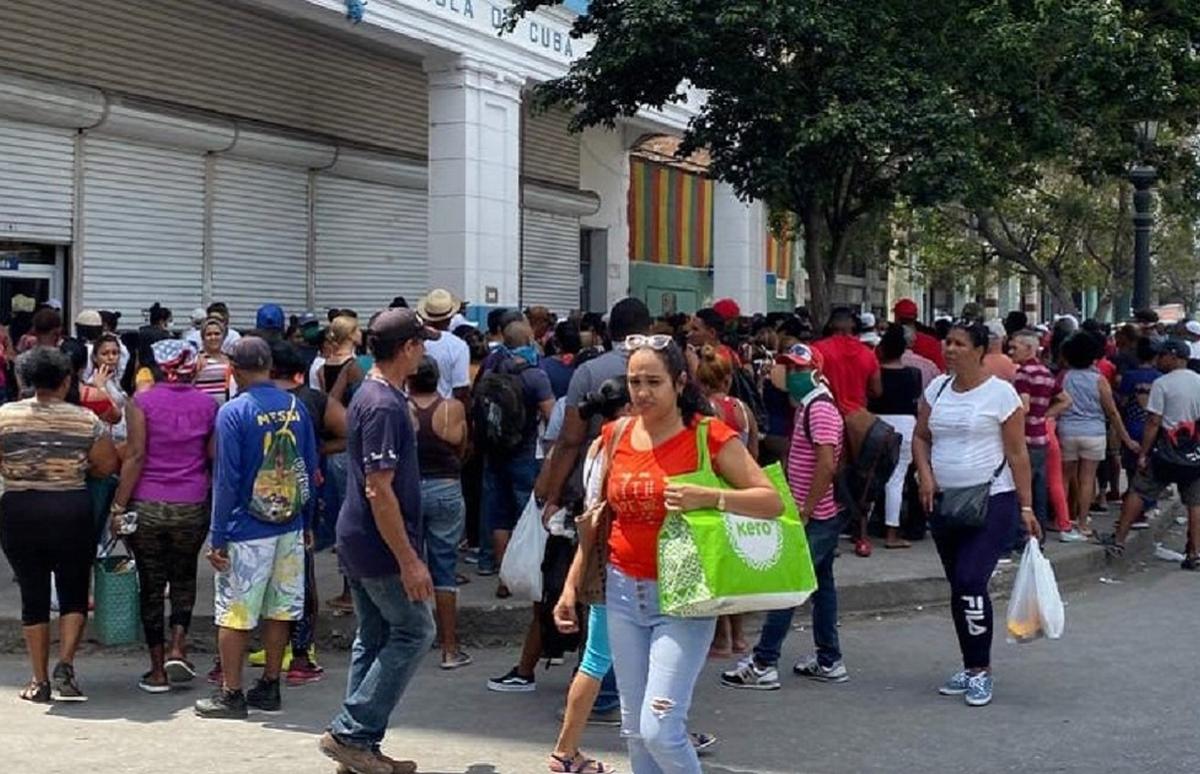 Sancti Spíritus, Cuba, (ICLEP).La presencia de colas frente a mercados , puntos de ventas y tiendas en MLC, para comprar alimentos por cantidades, ante el temor de que estos desaparezcan o se agote , se ha convertido en una imagen diaria en cualquier lugar la capital espirituana.