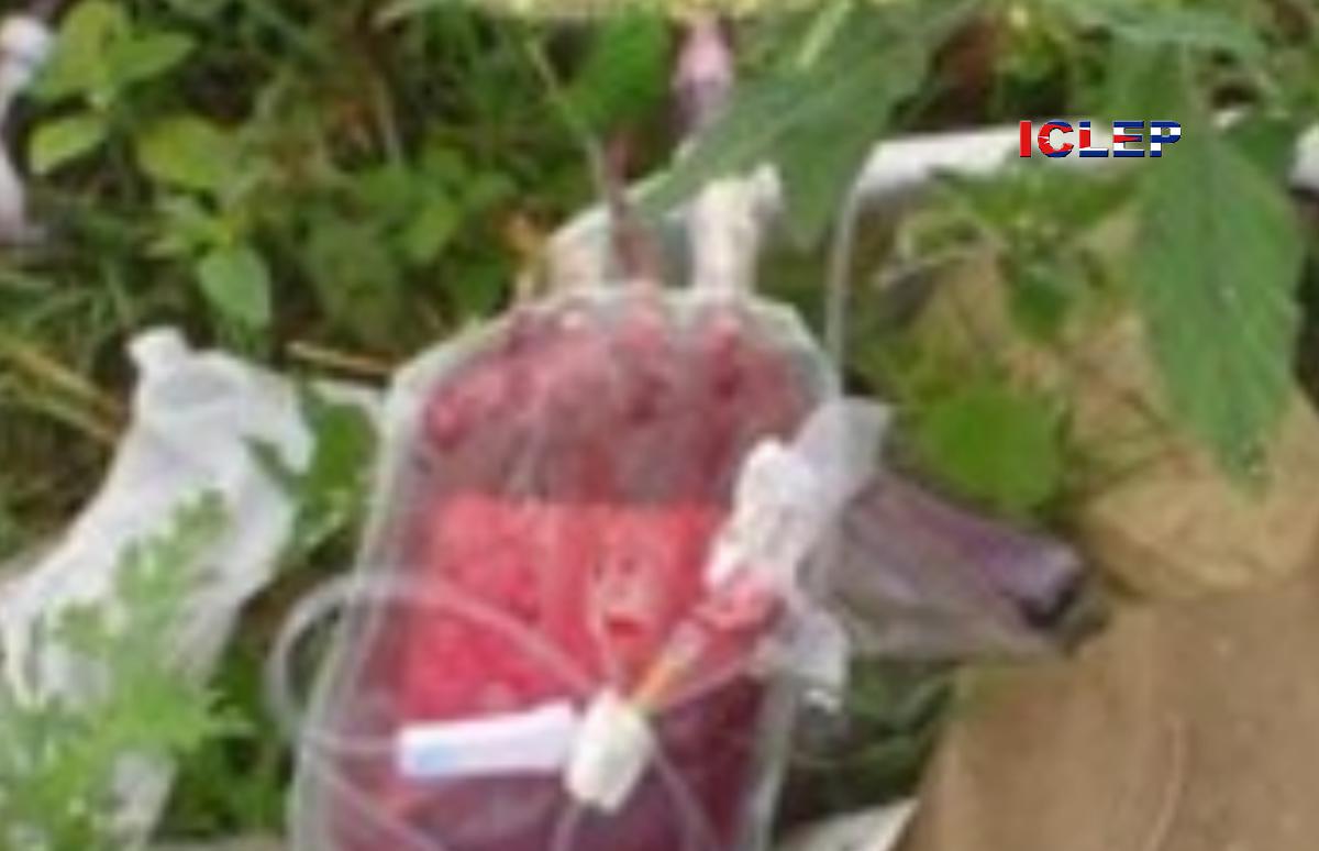 Bolsa de sangre y materiales médicos de uso, tirados en un basurero sin protección donde suelen jugar niños. Artemisa. (El Majadero de Artemisa - ICLEP)