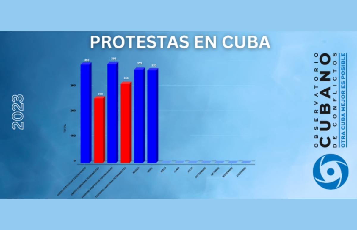 De acuerdo con las estadísticas de la organización con sede en Miami, Estados Unidos, las 370 protestas contabilizadas en abril de 2023 representan un incremento de 25,94% con respecto a las registradas en el mismo mes del año pasado (293).