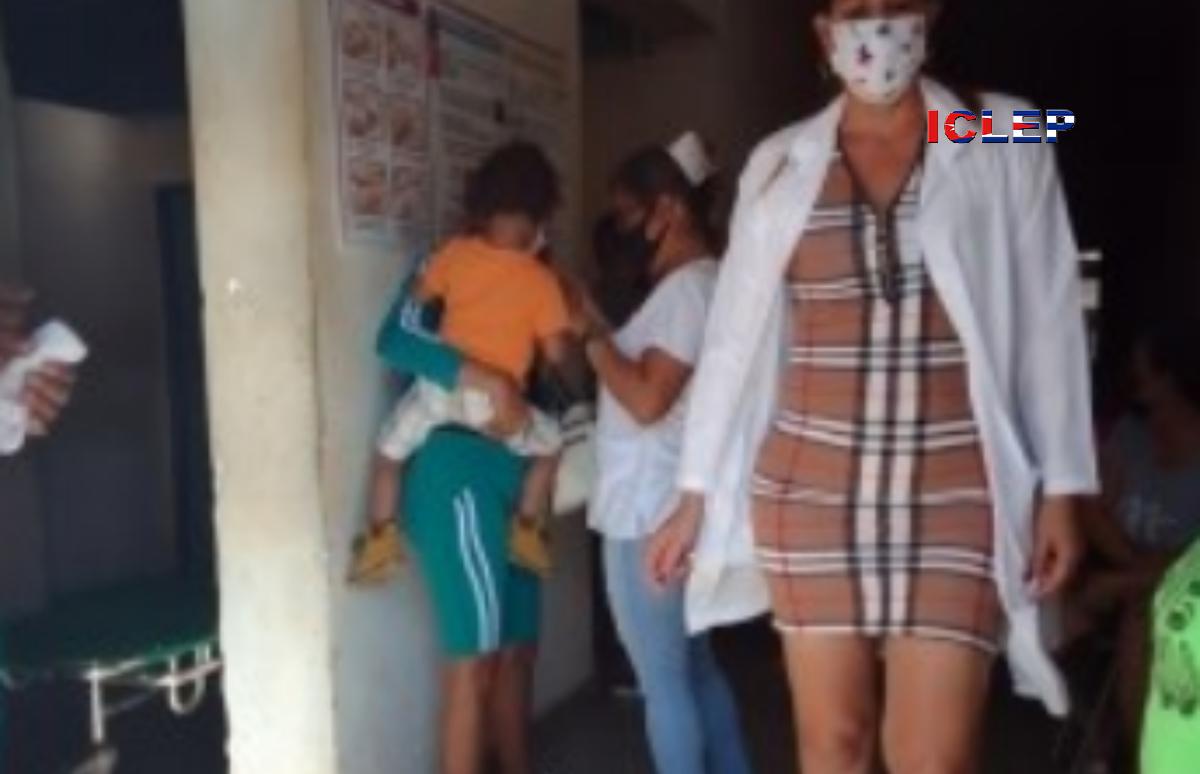 Niño siendo inyectado en medio del pasillo del policlínico Adrián Sansaricq. Artemisa. (El Majadero de Artemisa - ICLEP)