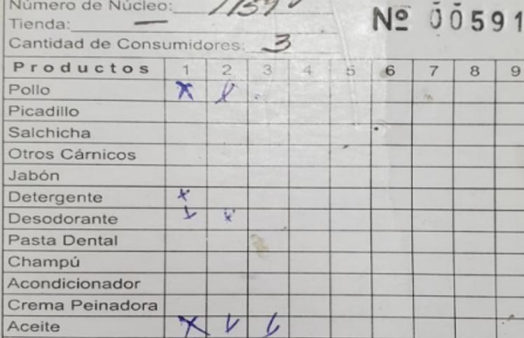 Página de una tarjeta de racionamiento / Foto Panorama Pinareno ICLEP